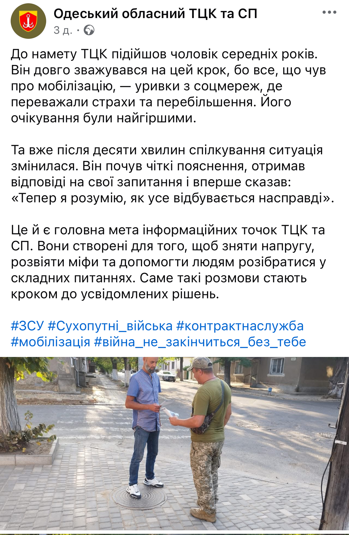 Це й є головна мета інформаційних точок ТЦК та СП. Вони створені для того, щоб зняти напругу, розвіяти міфи та допомогти людям розібратися у складних питаннях. Саме такі розмови стають кроком до усвідомлених рішень”