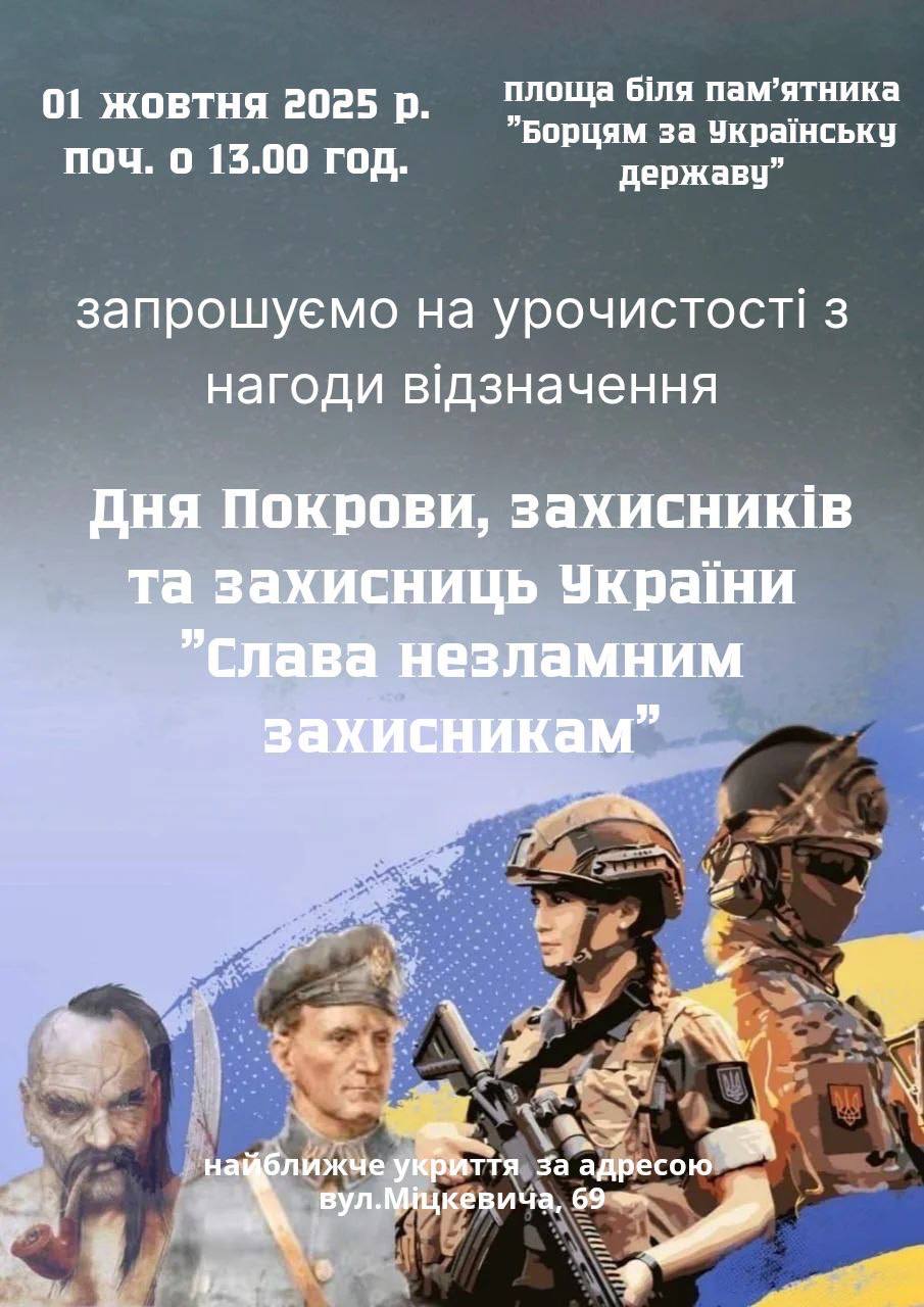 Мешканців і гостей Калуша, Болехова та Долини запрошують 1 жовтня долучитися до урочистостей та віддати шану захисникам, які боронили й боронять незалежність держави.