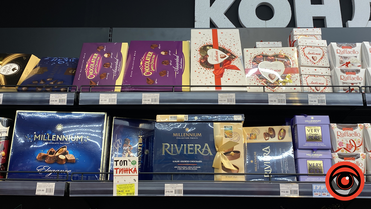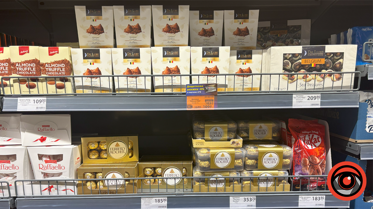 У “Сільпо” ціна на пачку цукерок стартують від 90 гривень. Чим більша пачка, тим вища ціна. Тут можна придбати цукерки і за 200 грн і за 400 грн.