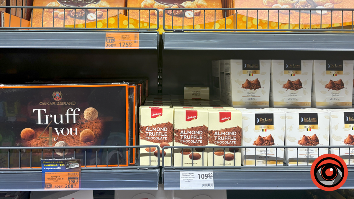 У супермаркеті “АТБ” є великий асортимент цукерок на будь-який смак та ціну. Ціни стартують від 60 гривень і з величиною пачки відповідно збільшуються. Втім, можна придбати пачку цукерок за 98 гривень і за 353 грн.