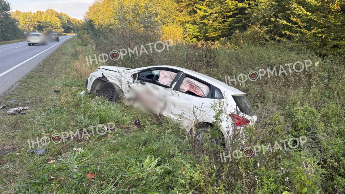 Щодо наслідків, то одна з пошкоджених автівок зараз знаходиться у кюветі, інша — залишається на дорозі. Причому відстань між обома чимала, а на самій трасі багато дрібних уламків від транспортних засобів.