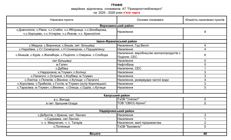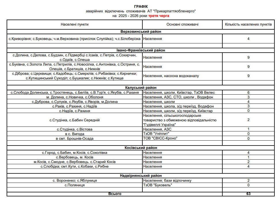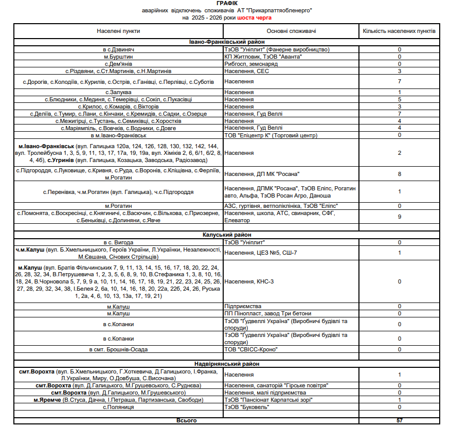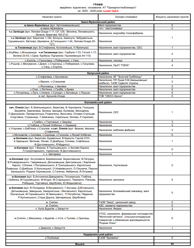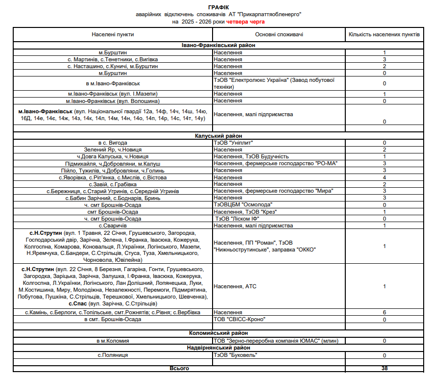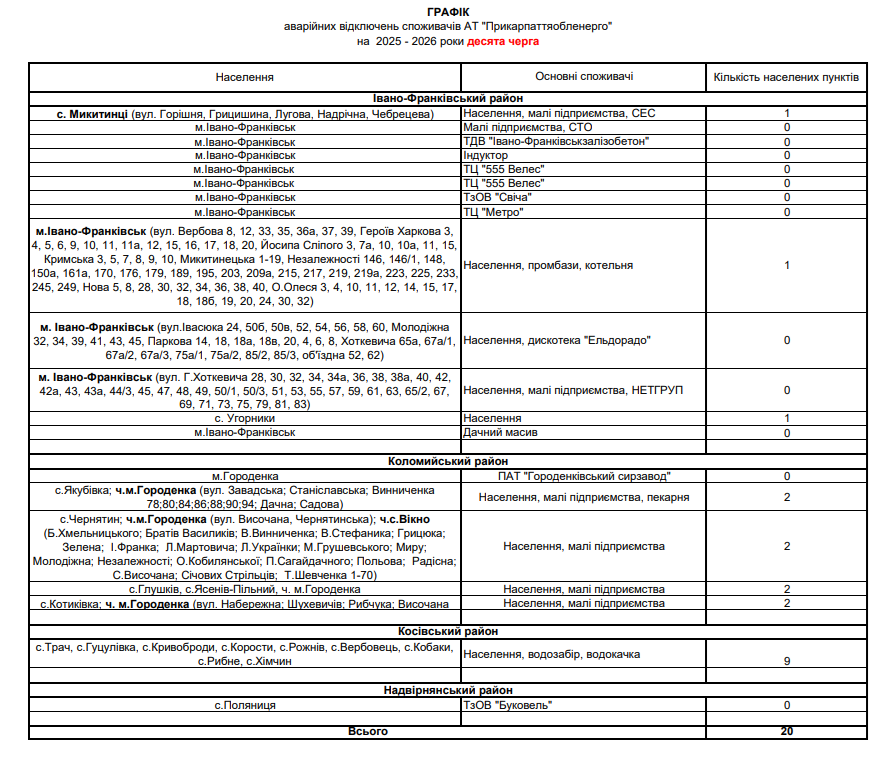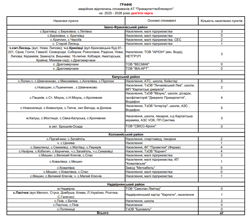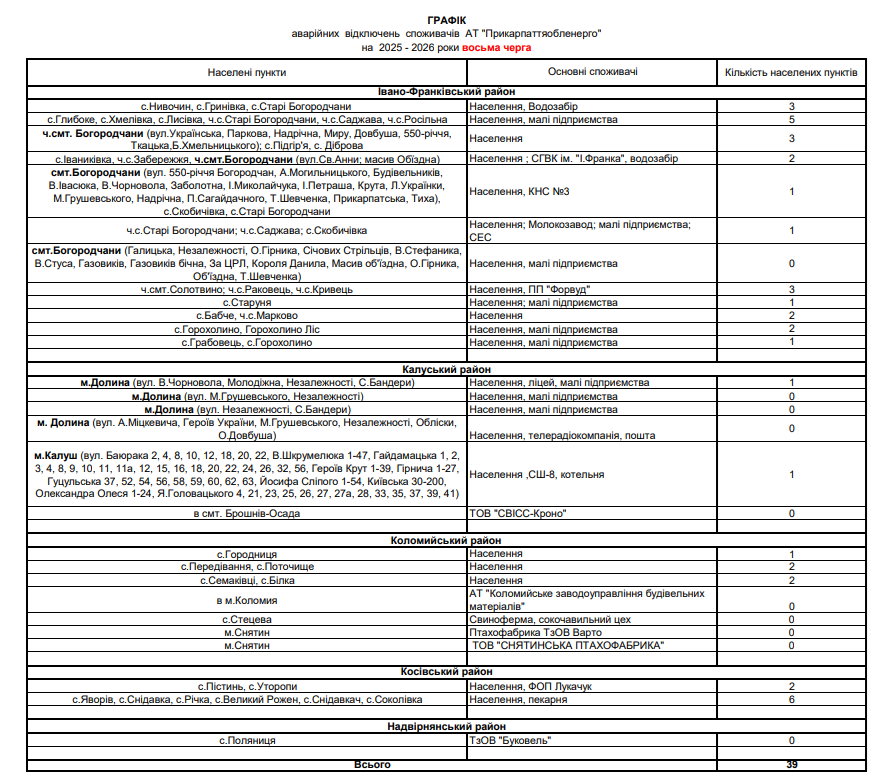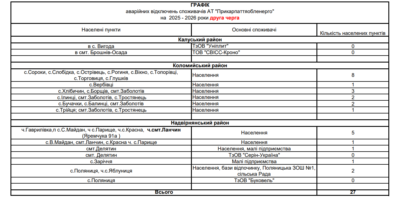 Оновлені графіки для Прикарпаття будуть діяти з 1 жовтня 2025 року і до 1 квітня 2026 року.