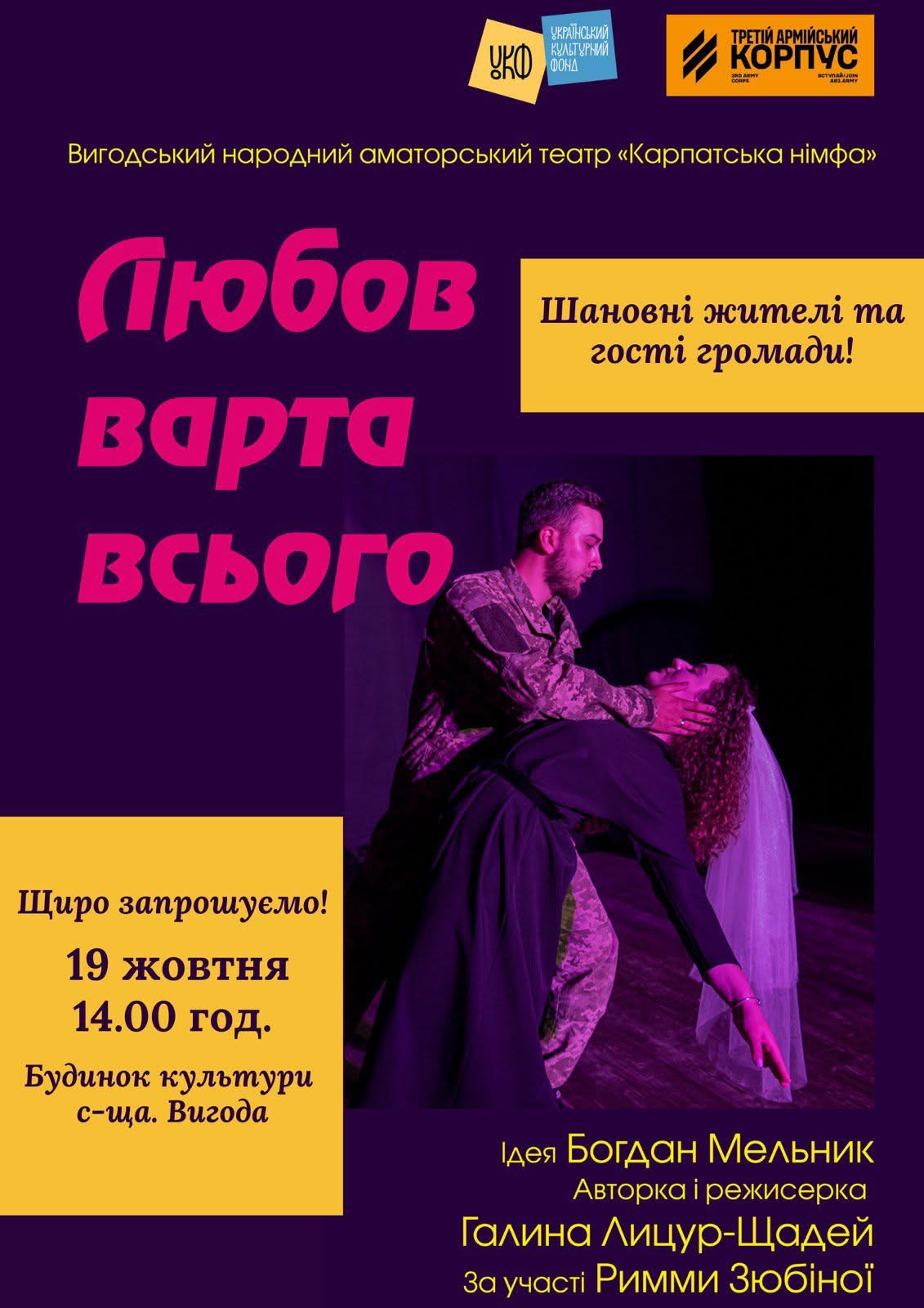 Вигодський аматорський народний театр “Карпатська Німфа” презентуватиме довгоочікувану виставу “Любов варта всього”