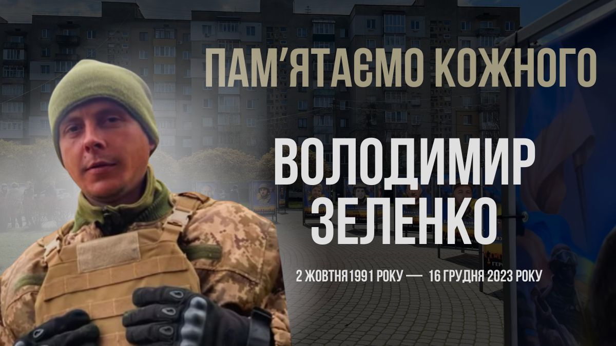 Із початком повномасштабного вторгнення, Володимир 18 вересня 2022 року був призваний на військову службу до ЗСУ. Був старшим солдатом 1 мінометного взводу мінометної батареї 1 штурмового батальйону. Ніс службу та виконував бойові завдання на Донеччині. Під час виконання одного із бойових завдань на Донецькому напрямку 16 грудня 2023 року військовослужбовець із Калуша Володимир Зеленко на жаль загинув.