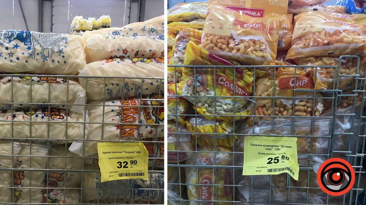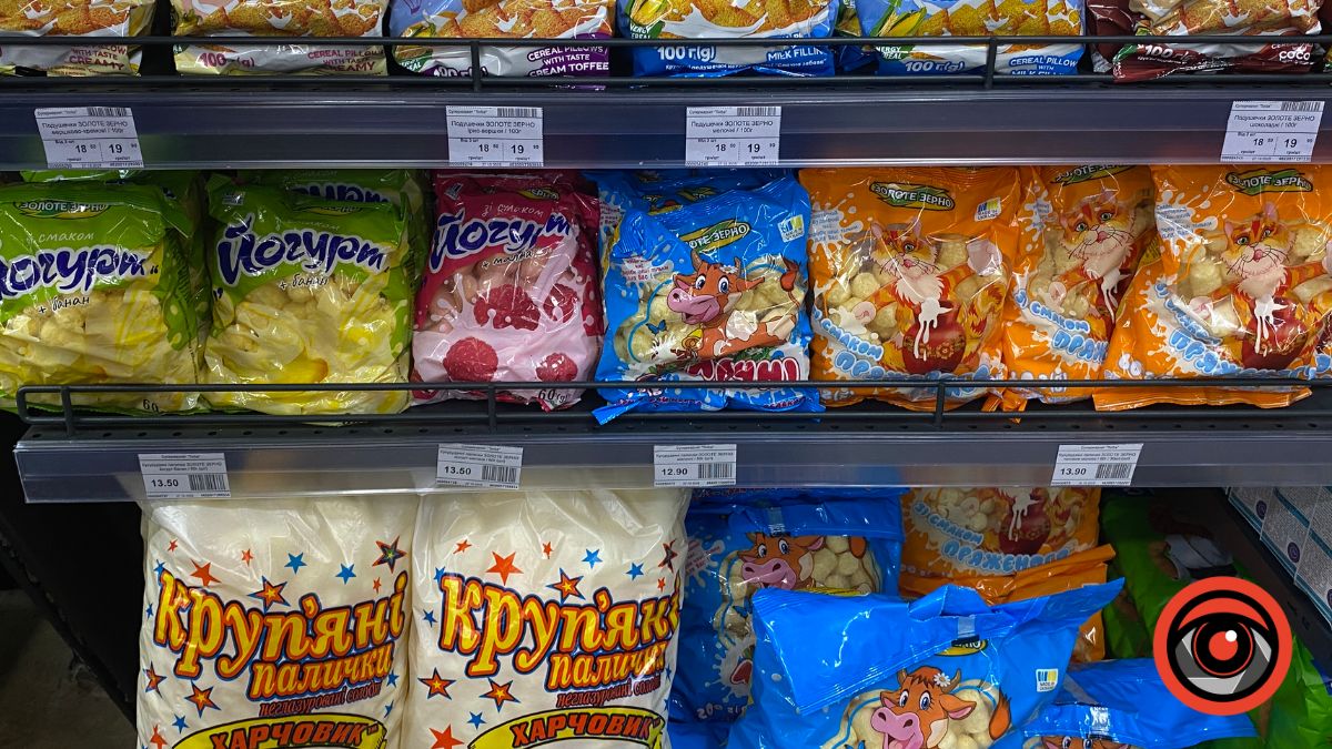 У супермаркеті “Дивоцін” до продажу пропонують кукурудзяні палички вагою 450 г. за 61.90 грн. Найдешевші солодкі снеки тут за ціною 32.90 грн за 400 г. Проте про любителів солоного також не забули — всього лише за 25.80 грн можна знайти кукурудзяні палички зі смаком сиру.