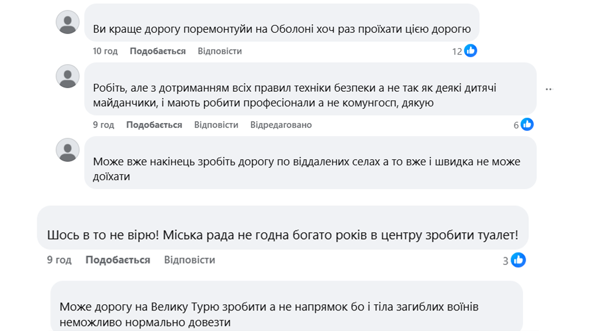 “Чудово, але це повинно бути зробленого не з цементу, а з гумового покриття і без гострих кутів, щоб дітки не повбивались, бо ви хочете вкласти гроші так, щоб десь їх списати і все відбивається на здоровʼї та життях людей. Продумайте, прорахуйте, щоб було безпечно!!!! Зробіть не тільки трампліни, а й вело чи самокатові треки (дороги). Такі майданчики повинні бути більшими і лавки по техніці безпеки за межами території тобто далі навіть за пішохідною доріжкою!!! Знаю про що кажу, бо сама люблю кататись, але на самокаті”, – йдеться у зверненні до Івана Диріва.