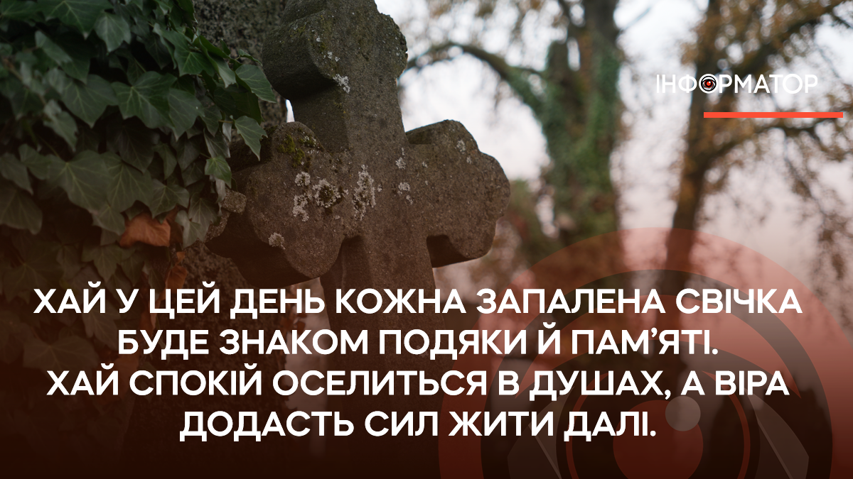 Хай кожна запалена свічка сьогодні буде знаком любові й пам’яті. Нехай святі заступаються за вас, а Бог дарує мир і благословення.