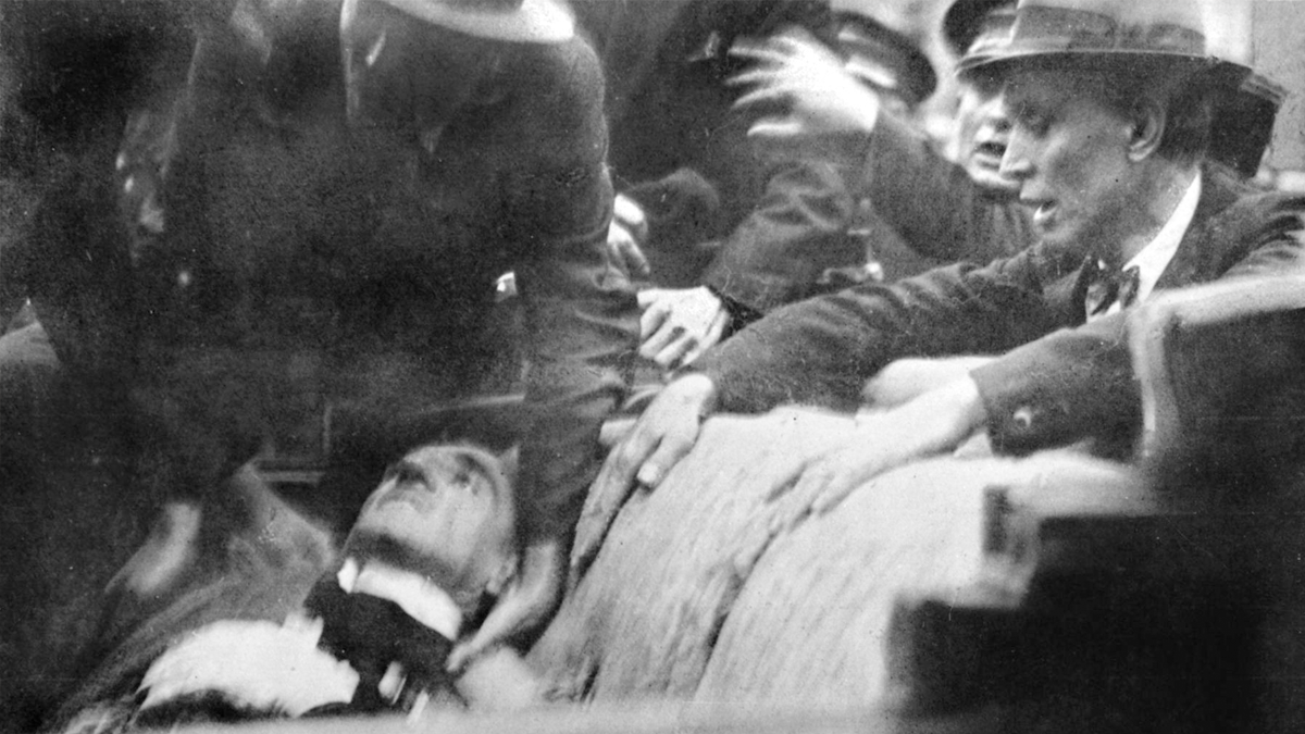 Смертельно поранений блідий король Олександр лежить на задньому сидінні кабріолета Деланжа, який провіз його до смерті. Джерело: Warfare History Network