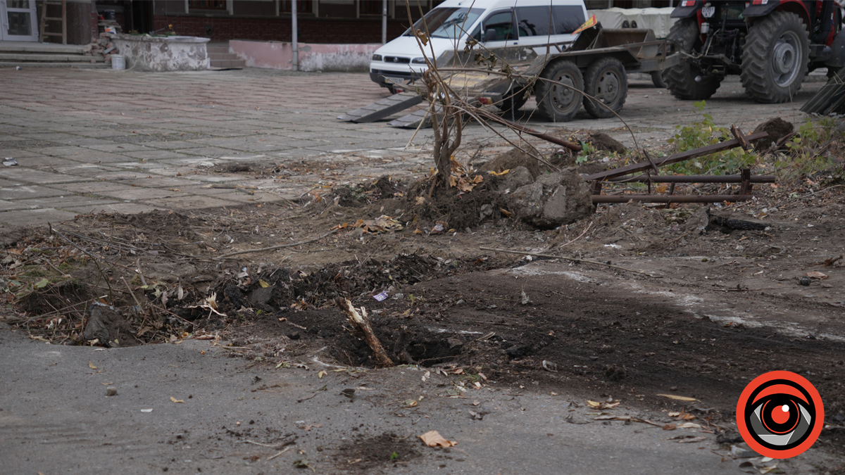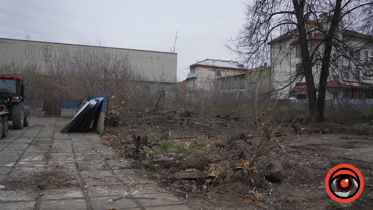 Територію перед колишнім кінотеатром “Відродження” сьогодні розчистили від дерев та кущів, які росли там з десяток років. З площі забрали і металевий паркан. Хто впорядковує територію і що з нею буде далі?