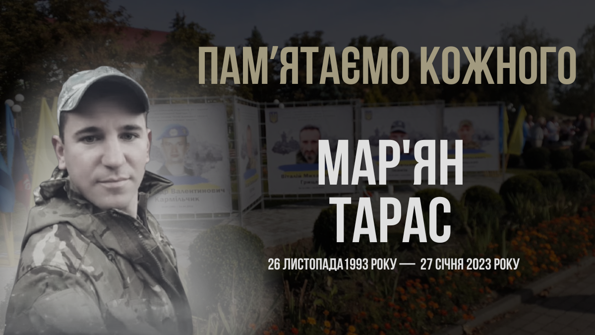 Мар’ян Тарас народився 26 листопада 1993 року в селі Верхній Струтинь, що на Івано-Франківщині. Мав двох сестер. Навчався у місцевій школі, а згодом — у Спаській. Хлопець був працьовитим та веселим, допомагав батькам, а друзі цінували його за надійність та справедливість.