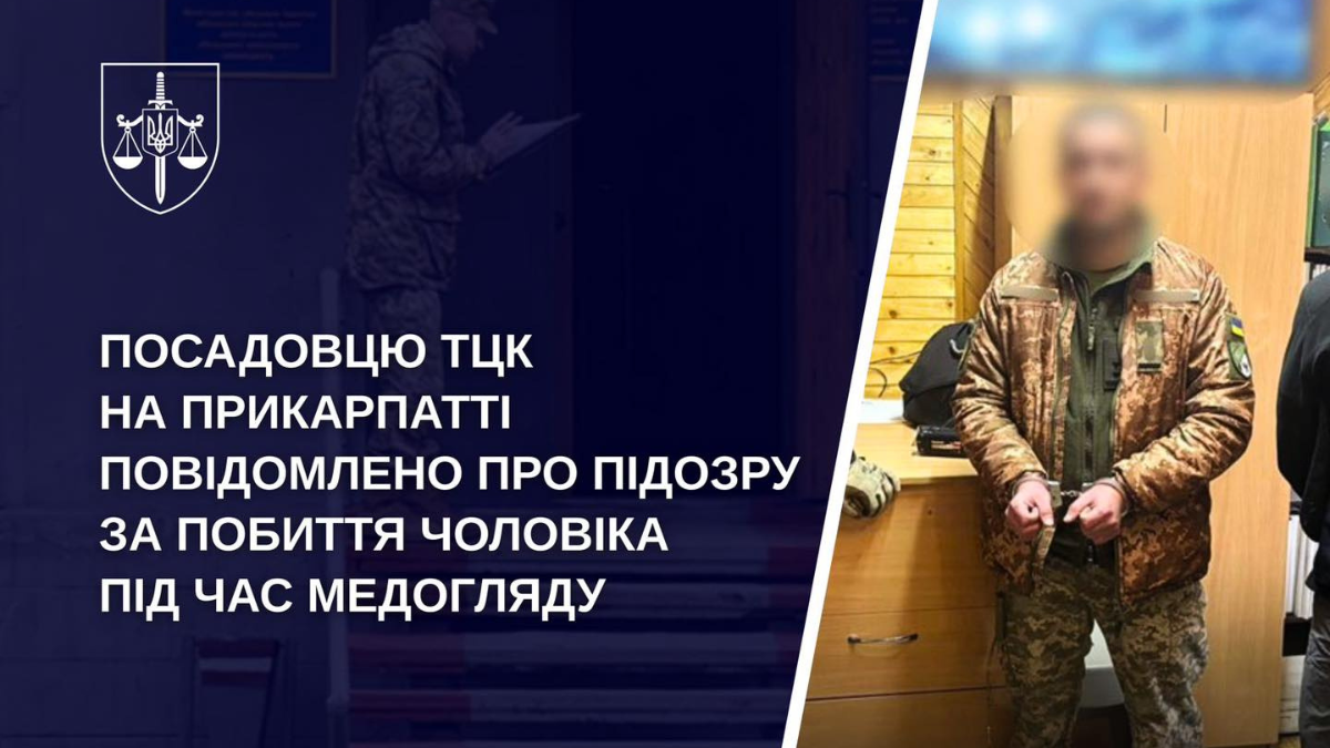 Як йдеться в офіційній інформації, прокурори Івано-Франківської спеціалізованої прокуратури у сфері оборони повідомили про підозру заступнику начальника ТЦК, який під час медогляду жорстоко побив військовозобов’язаного.
