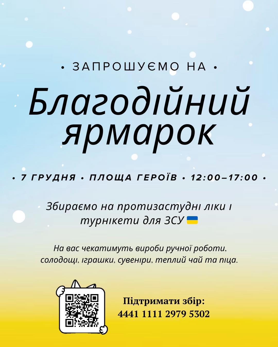 Ярмаркувати будемо 7 грудня на площі Героїв з 12:00 й орієнтовно до 17:00.
