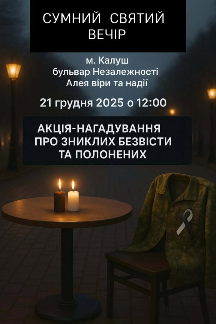 Калушан запрошують долучитися до заходу, що запланований на 21 грудня і буде відбуватися на Алеї віри на надії.