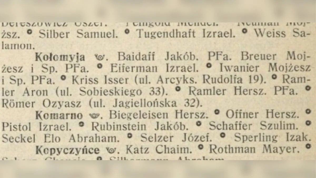 У довіднику “Księga Adresowa Polski (wraz z W. M. Gdańskiem)” за 1929 рік вказано, що Рубін Остерзетцер мав магазин на вул. Собєського, 2. За даними Яд Вашем, народився у 1880 році в Коломиї, за професією був купцем. У газеті “Nasz Głos” зазначений як людина, яка неодноразово підтримувала Єврейську народну кухню продуктами та грошима. Загинув під час Голокосту у Шепарівському лісі в 1942 році. У нього була єдина донька Люсія (1920 – 1942).
