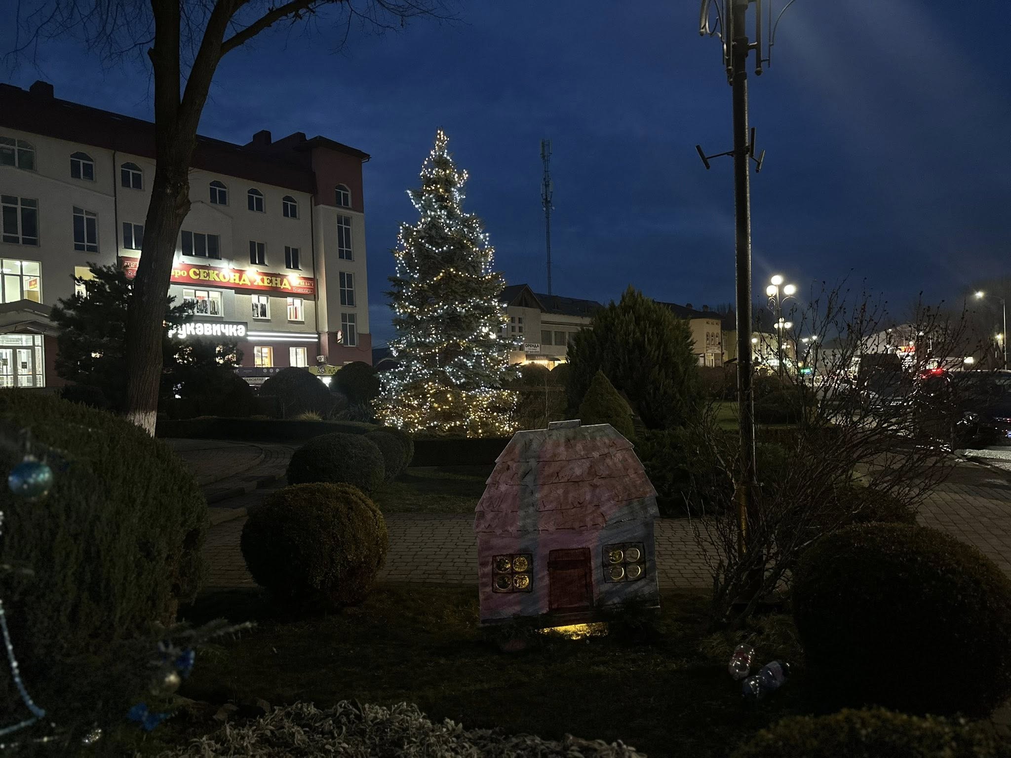 Особливістю цьогорічного декору у місті є жива ялинка, що прикрашена гірляндами синьо-жовтого кольору. Поблизу місцеві комунальники розмістили різдвяний вертеп. Для зручності містян також передбачено святкову локацію. На ній можна зробити декілька зимових світлин.