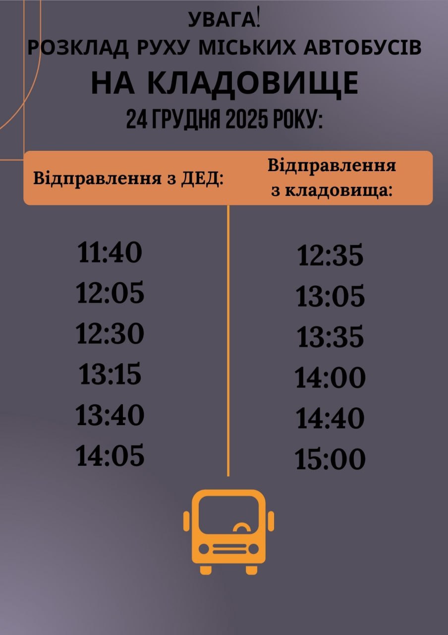 Завтра, 24 грудня за маршрутом до кладовища у Долині будуть курсувати міські автобуси. У цей час всі, хто має таке бажання і потребу, зможуть відвідати могили померлих на кладовищі.