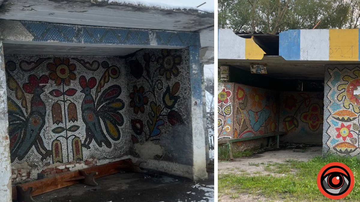 У одному із сіл Львівської області в процесі розширення траси M-09 знищили мозаїчну зупинку, хоча ще в серпні громадськість звертала увагу на те, чи буде збережена мозаїчна зупинка у процесі ремонтних робіт на цій ділянці дороги.