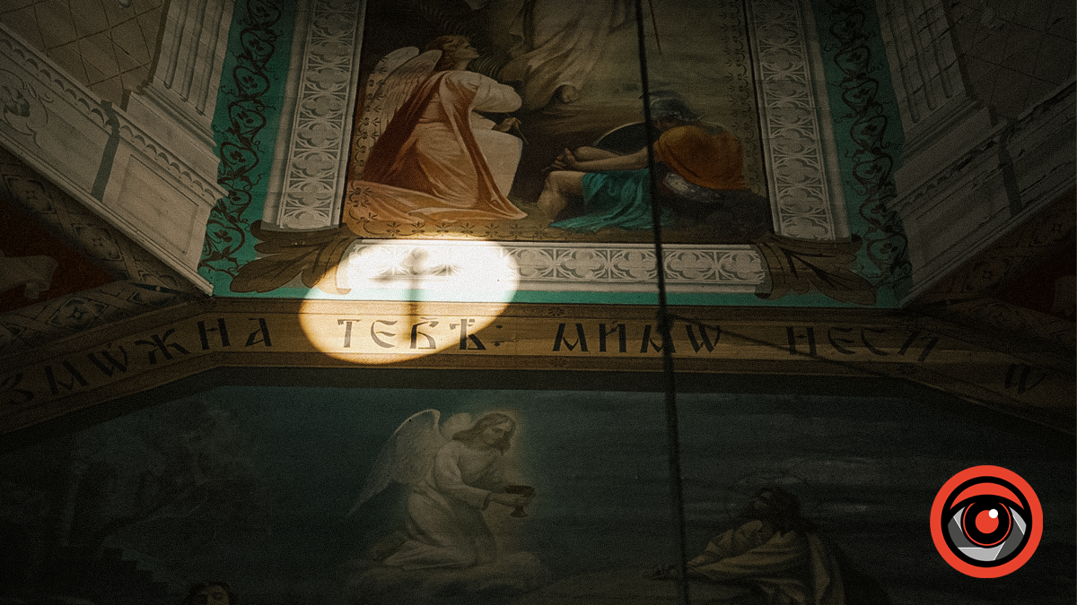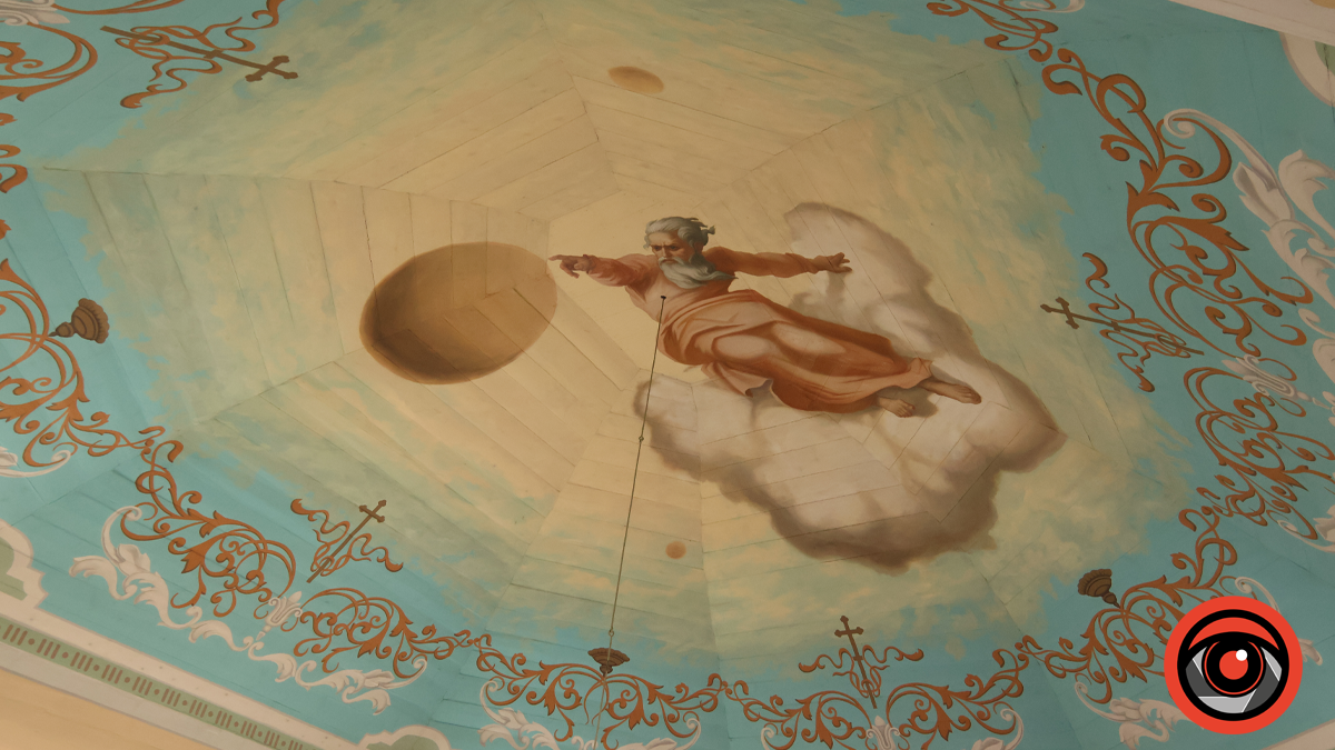 Одна з найбільш промовистих деталей, що зараз нагадує про радянський слід — розпис у притворі храму. Під час реставрації наприкінці 1980-х майстри відновлювали образ Бога-Творця, який торкається землі. Але поруч залишили ще дві планети.
