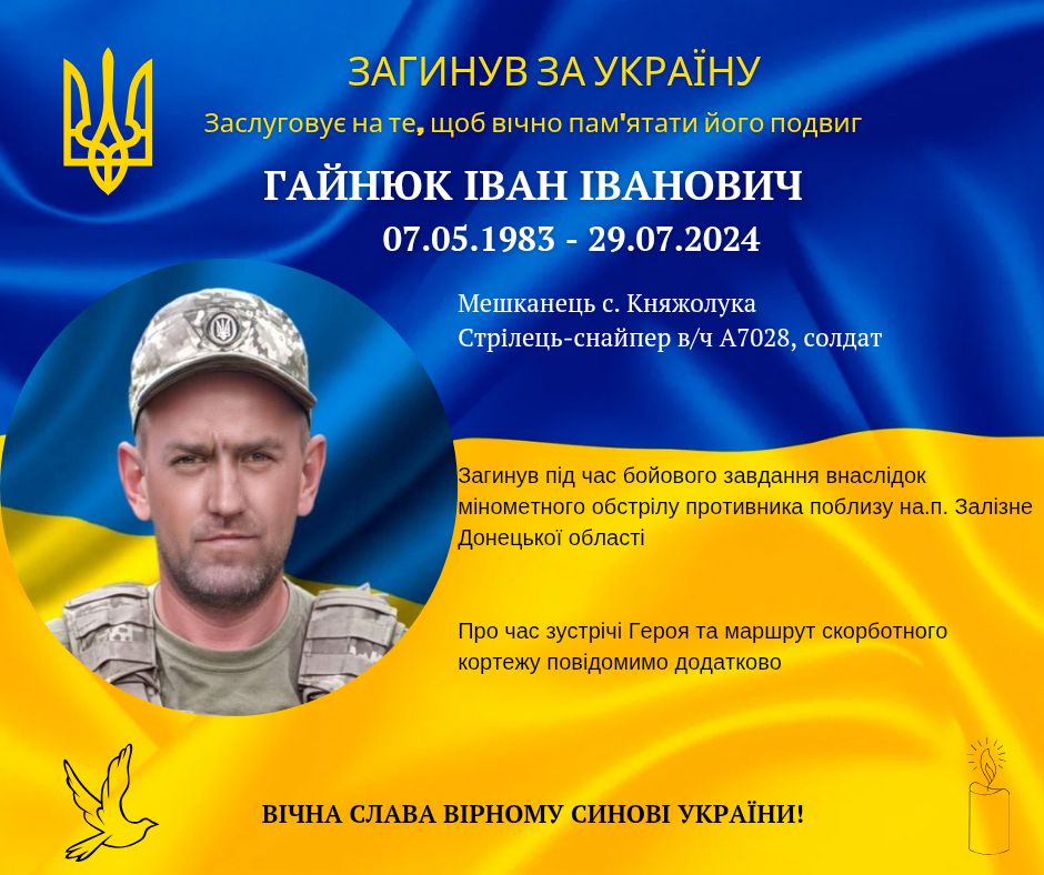 Скорботна звістка надійшла у Долинську громаду: підтвердилась загибель Івана Гайнюка з Княжолуки.