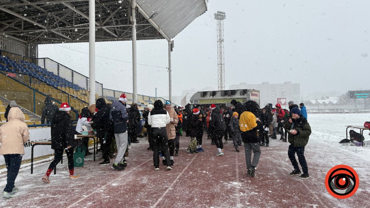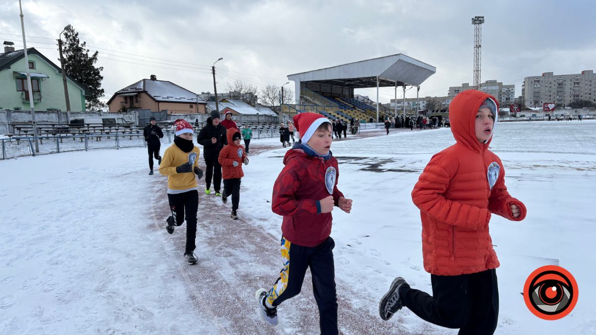 У переддень Нового року на вулиці у Калуші — добрячий вітер та морозець. Але на стадіоні «Хімік» цього дня було справді гаряче. Калушани у новорічних шапках, різдвяних светрах, з яскравими гірляндами та святковими обручами бігли символічні 2026 метрів — назустріч новому року.