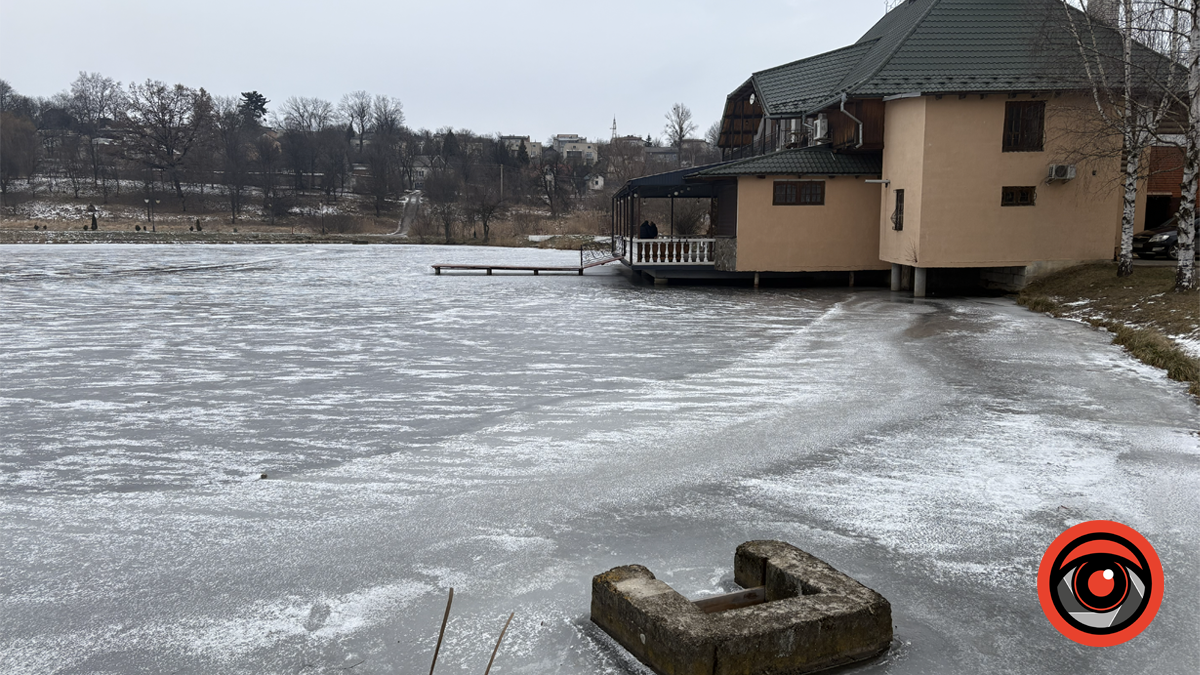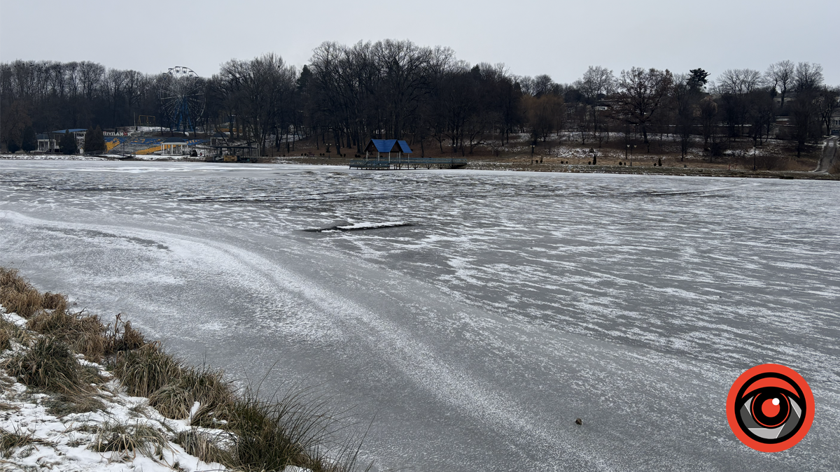 Зима змінила ритм Калуського міського парку. Озеро скувала крига, а рух залишився лише там, де вода ще не здалася морозу.