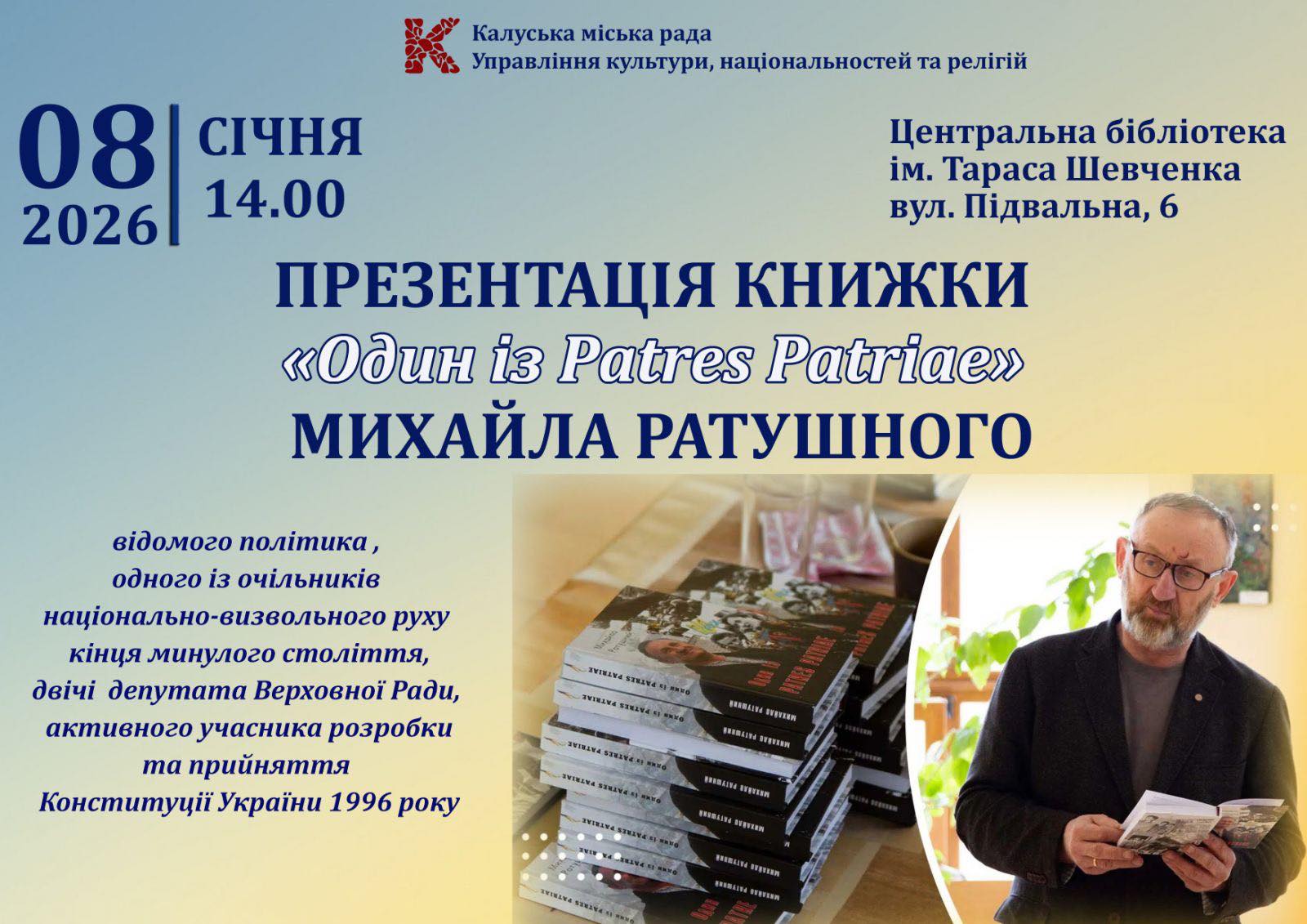 На презентацію запрошує Калуська центральна бібліотека імені Тараса Шевченка, у приміщенні якої й відбудеться зустріч. Початок — о 14:00 8 січня.