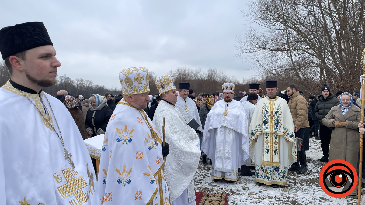 Жителі Добровлян традиційно встановлюють хрест на березі Лімниці напередодні свята Богоявлення. Січень 2026 р.