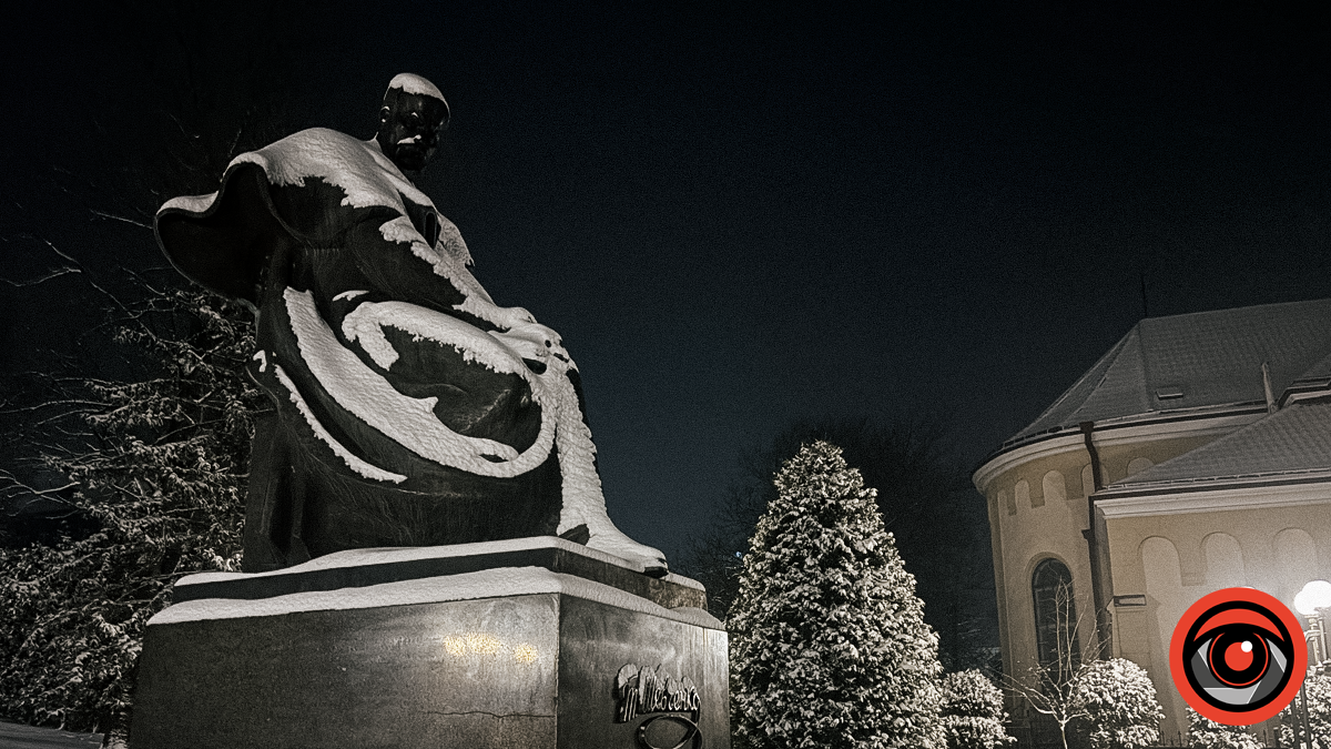 Навіть Кобзар одягнув кожуха, щоб не застудитися і ви робіть за прикладом Тараса Григоровича, бо погода 9 січня обіцяє бути не менш морозною та зимовою. Старий костел св. Валентина у такі миті виглядає ще більш величніше у очах простого перехожого.
