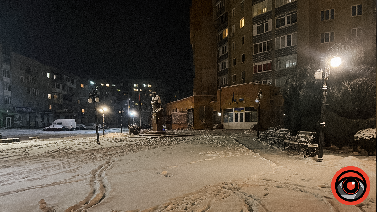 Вечірній Калуш цього разу був особливим. Свіжий сніг рівним шаром ліг на вулиці й дахи, приглушив звуки міста і додав спокою звичним локаціям. У світлі ліхтарів сніжинки повільно кружляли в повітрі, а морозець лише підкреслював відчуття справжньої зими.
