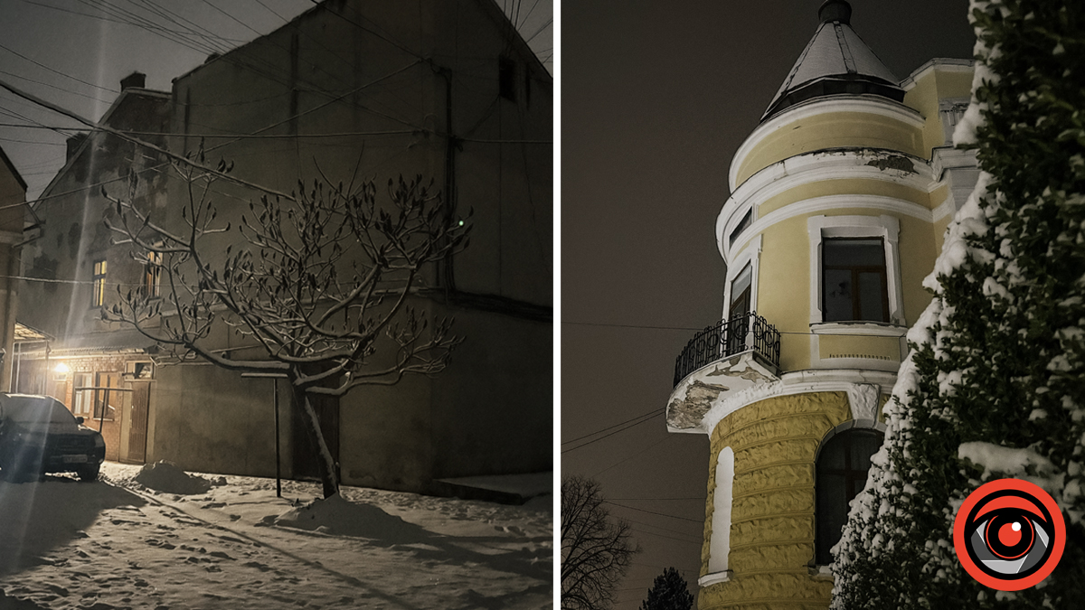 Мерехтіння ліхтарів у якому видно пролітаючпй сніг мимоволі дає відчути ту різдвяно-новорічну атмосферу старого міста.