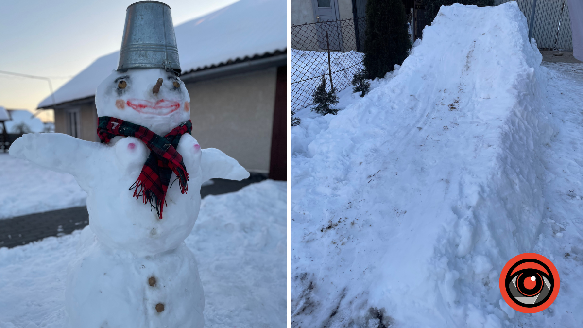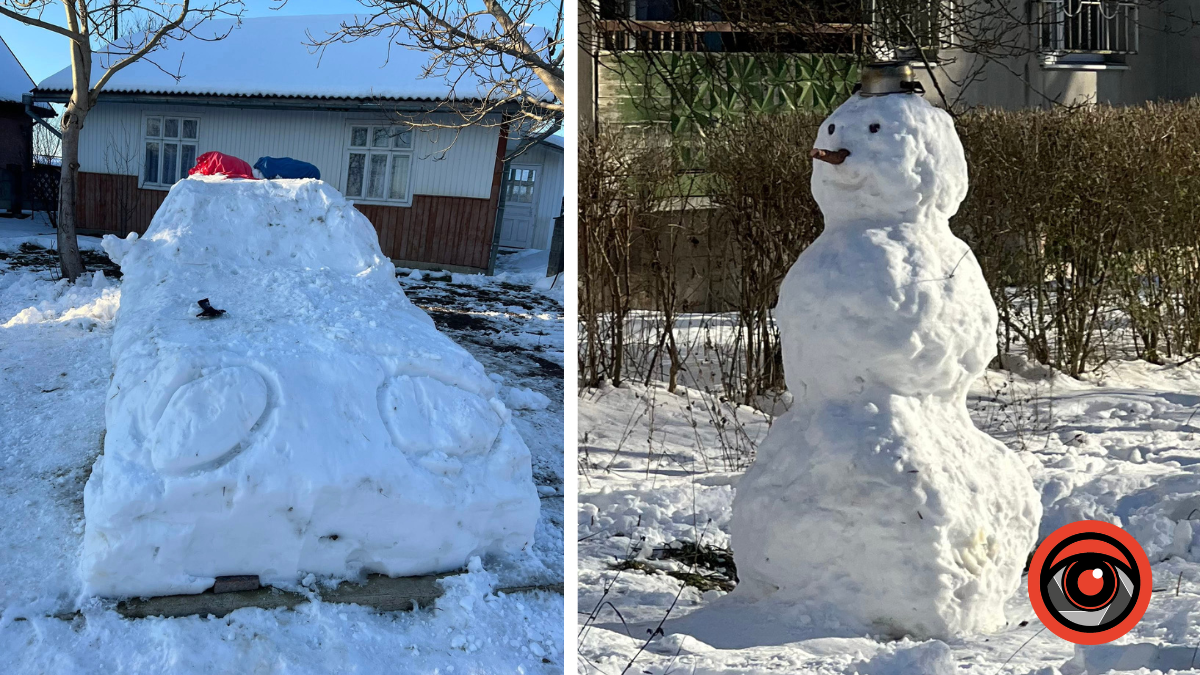 Після тривалих опадів та хвилі катання з усіх можливих гірок і пагорбів, у дворах багатоповерхівок та на сільських обійстях почала з’являтися сніговики та інші скульптури зі снігу.