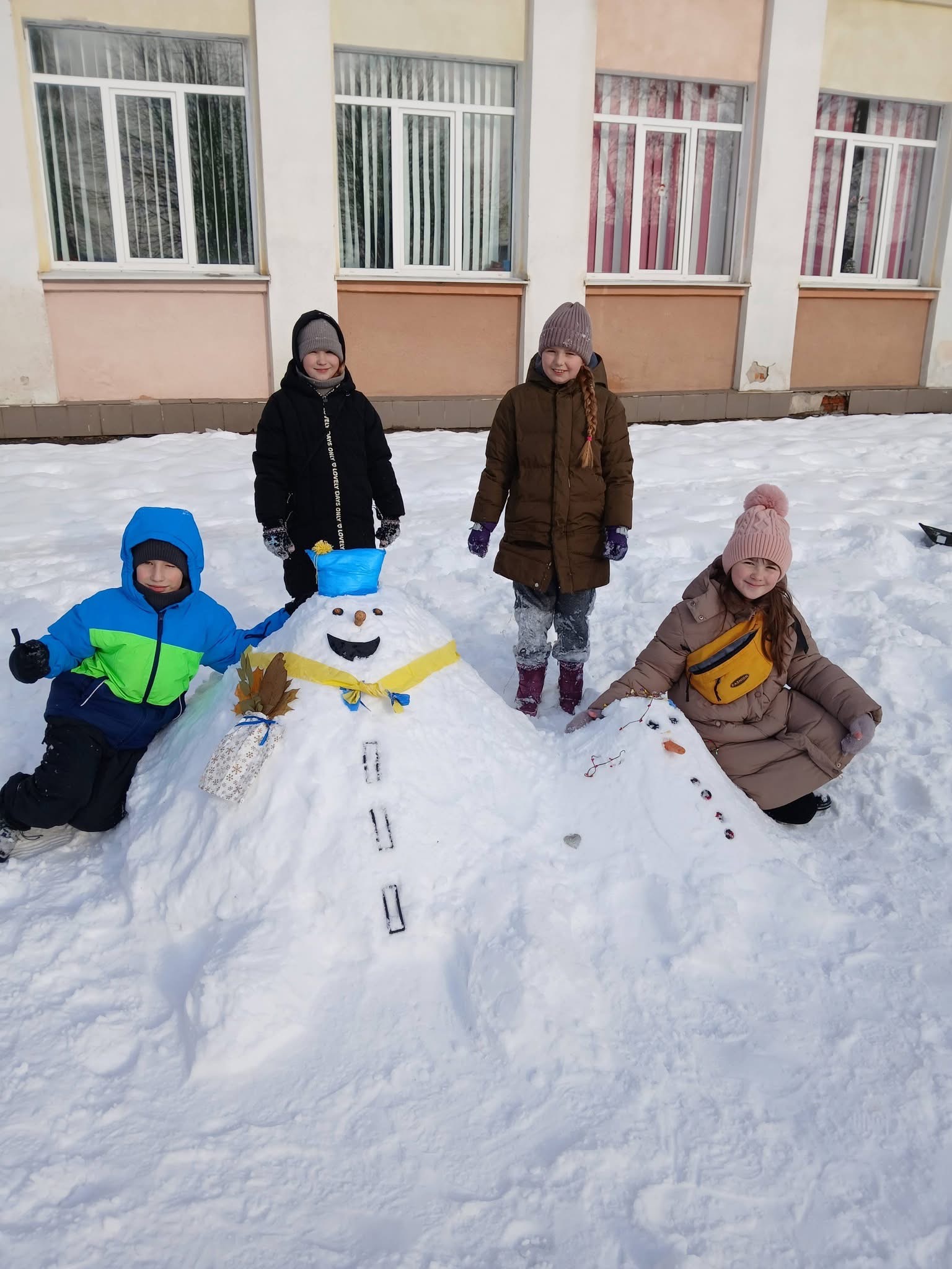 На подвір’ї ліцею з’явилися різноманітні види сніговиків, зокрема: кіт-сніговик, сніговик з гільзою, торт-сніговик, міні-сніговички, улюблений Олаф, лінивий сніговичок, снігова дівчинка, сніговик-черепаха подружжя сніговиків та багато інших.