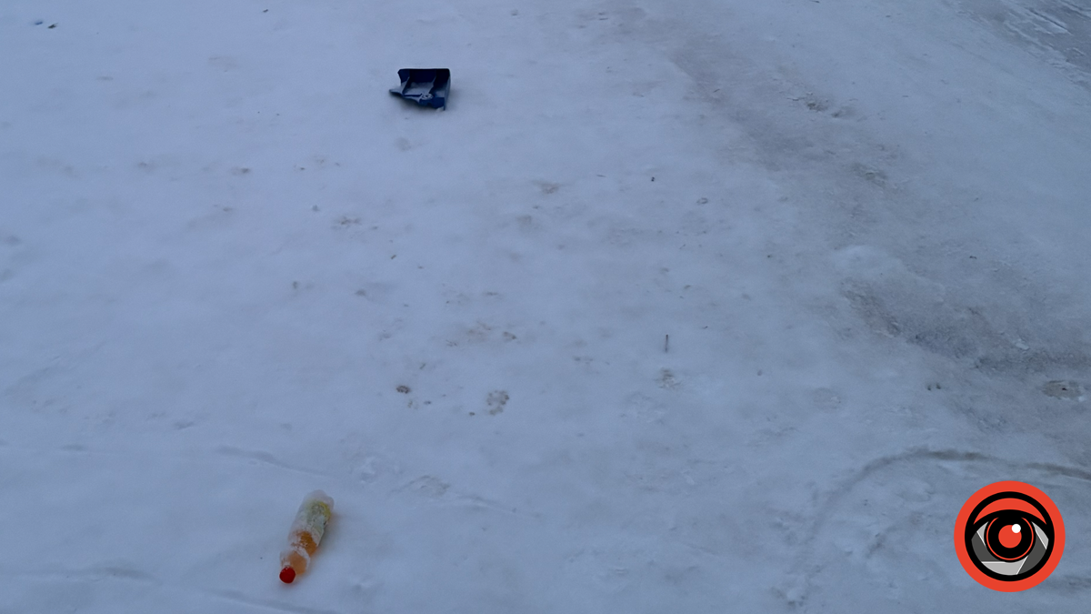 Окрім цього, біля імпровізованої гірки, що утворилася внаслідок морозів, залишилася недопита пляшка солодкої газованої води. Подібні випадки не лише псують зовнішній вигляд громадського простору, а й можуть становити небезпеку для інших відвідувачів парку.