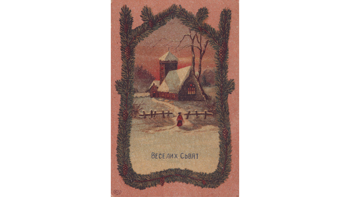 На лицевій стороні типова різдвяна листівка початку ХХ ст. Більше відповідає західним зразкам, що підтверджує напис на звороті — “Printed in Germany”. На звороті є цінна інформація, яка розповідає, коли і куди вона була адресована: