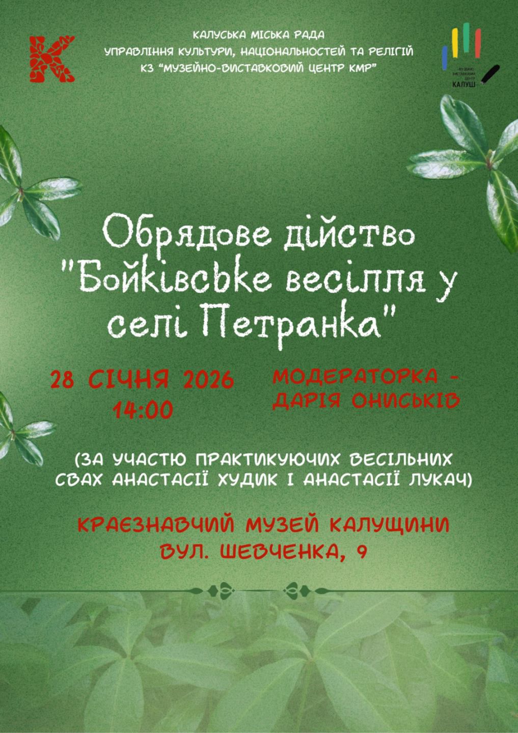 У Краєзнавчому музеї Калущини відбудеться показ автентичного обрядового дійства “Бойківське весілля у селі Петранка”