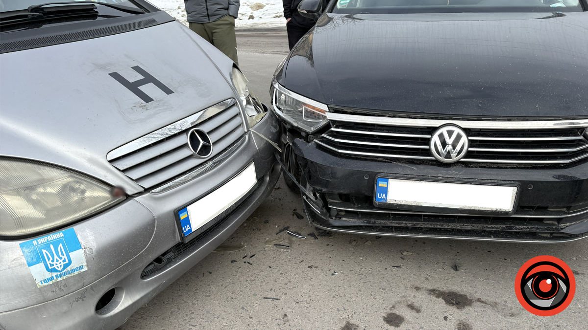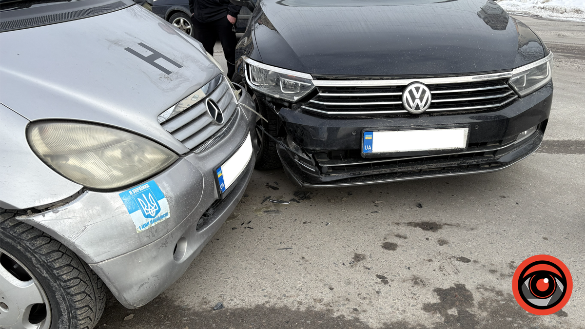 За попередніми даними зіткнулися автівка марки Volkswagen із автом Mercedes-Benz, що використовується однією із місцевих автошкіл для навчання водінню. Обидва авта мають незначні пошкодження передніх бамперів. На місці працюють правоохоронці та з’ясовують обставини автопригоди.