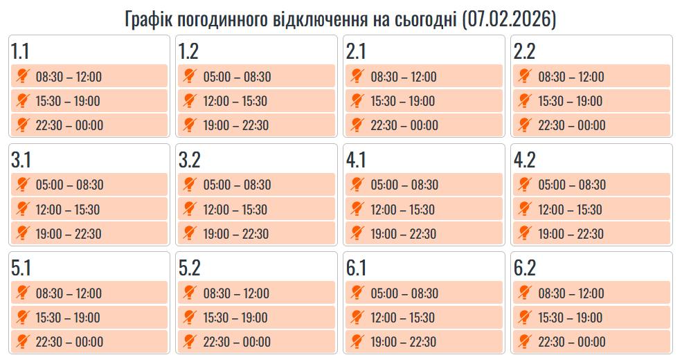 Протягом ночі 7 лютого ворог атакує Прикарпаття, внаслідок чого оновлено графіки погодинних вимкнень.
