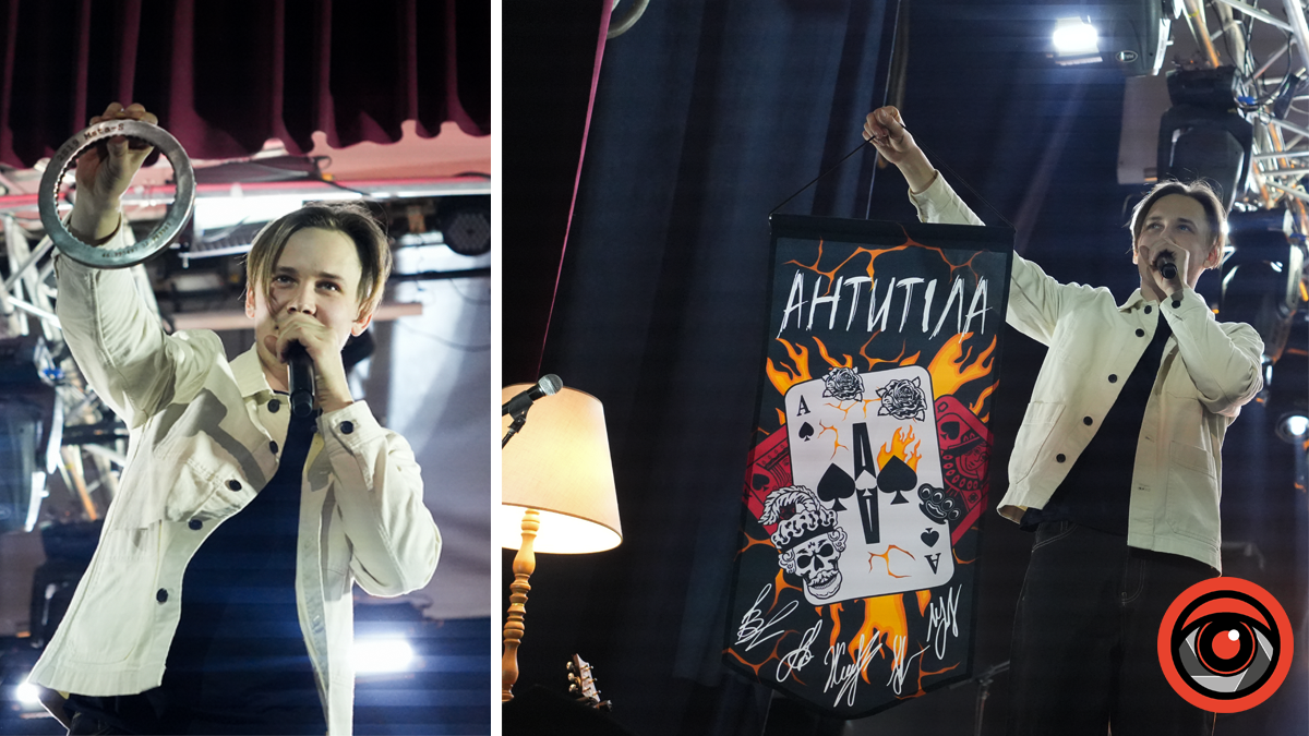 Водночас у перерві відбувся благодійний аукціон, де усі бажаючі мали можливість придбати цінні лоти і долучитися до підтримки Збройних Сил України. Відзначимо активну участь глядачів у аукціоні. Серед лотів – барабанні палички ударника Дмитра Водовозова разом із аркушем пісень, виконаних у Коломиї (з підписами гурту), лімітований військовий патч, єдиний великий вимпел “Антитіл”.