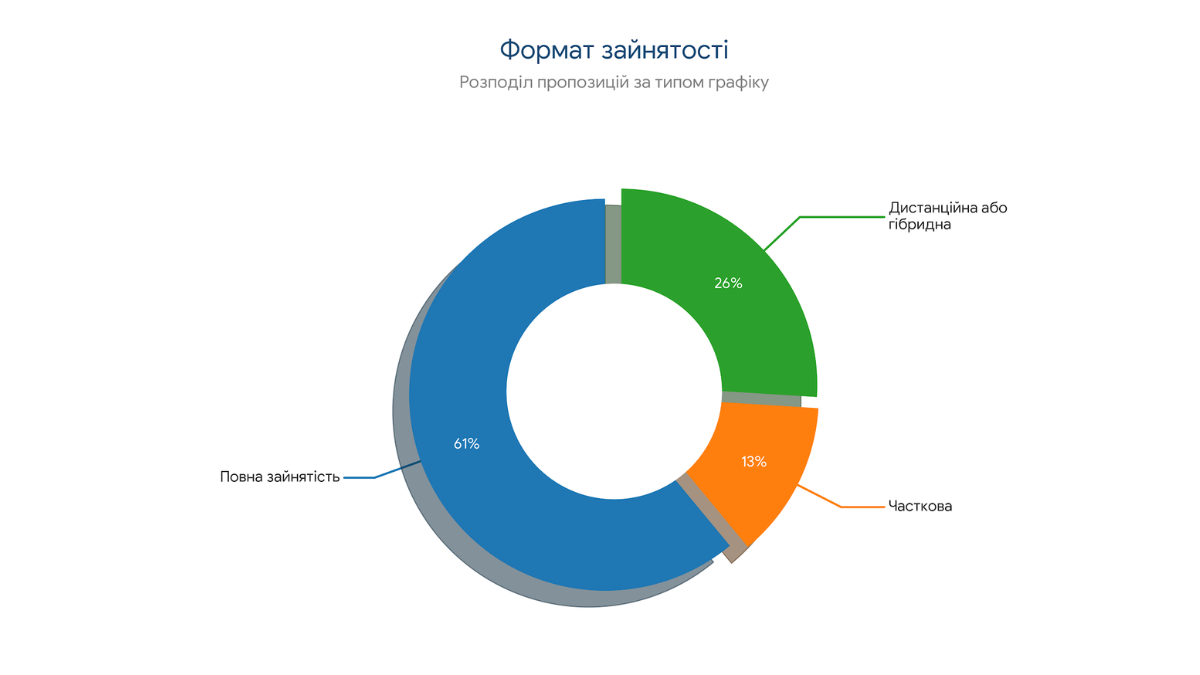 - дистанційна зайнятість — понад 26 % пропозицій допускають віддалений формат.