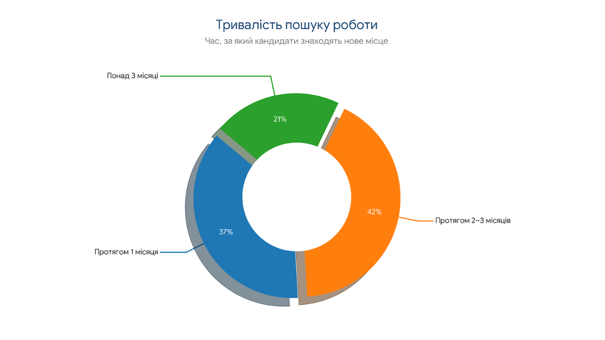 - 37 % кандидатів знаходять роботу протягом 1 місяця
