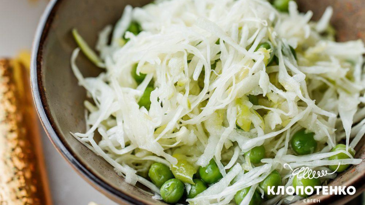 Цей легкий салат поєднує свіже яблуко з ніжним листям капусти та зеленим горошком. До того ж, він практично не має сезонності, тим він і цінний. Тож готуйте з радістю.
