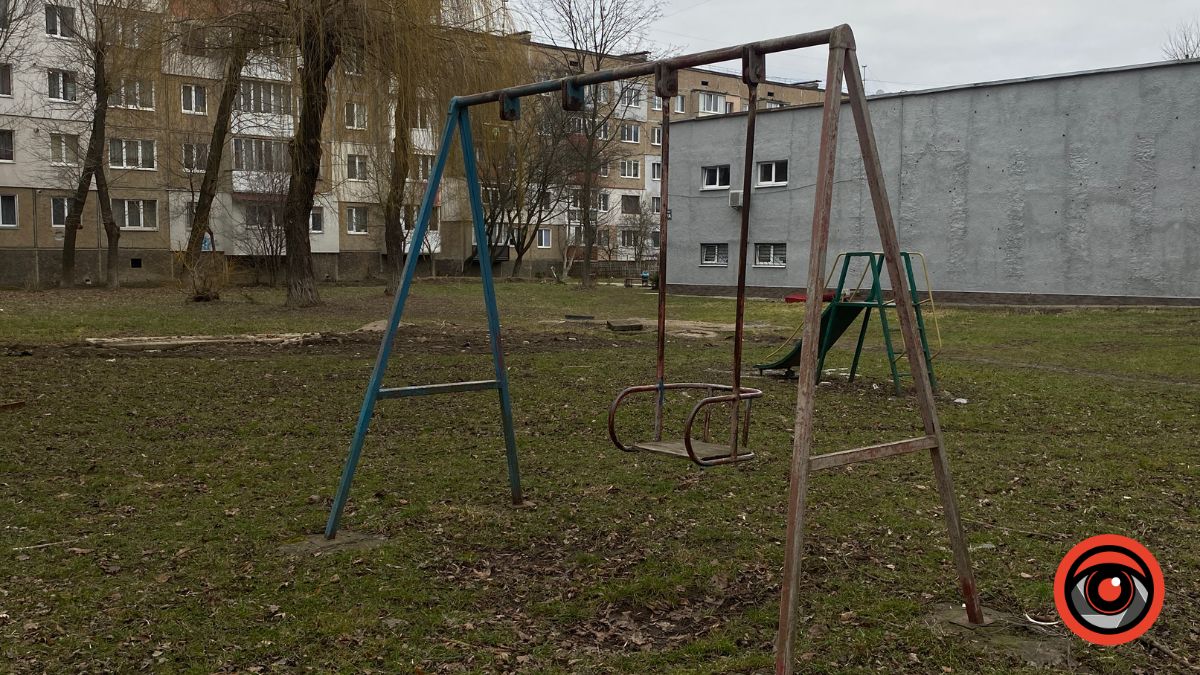 Мешканці будинку на вулиці Героїв України, 13 у Калуші просять облаштувати повноцінний дитячий майданчик у своєму дворі. Люди кажуть, що дітям ніде гратися: наявні конструкції застарілі та небезпечні