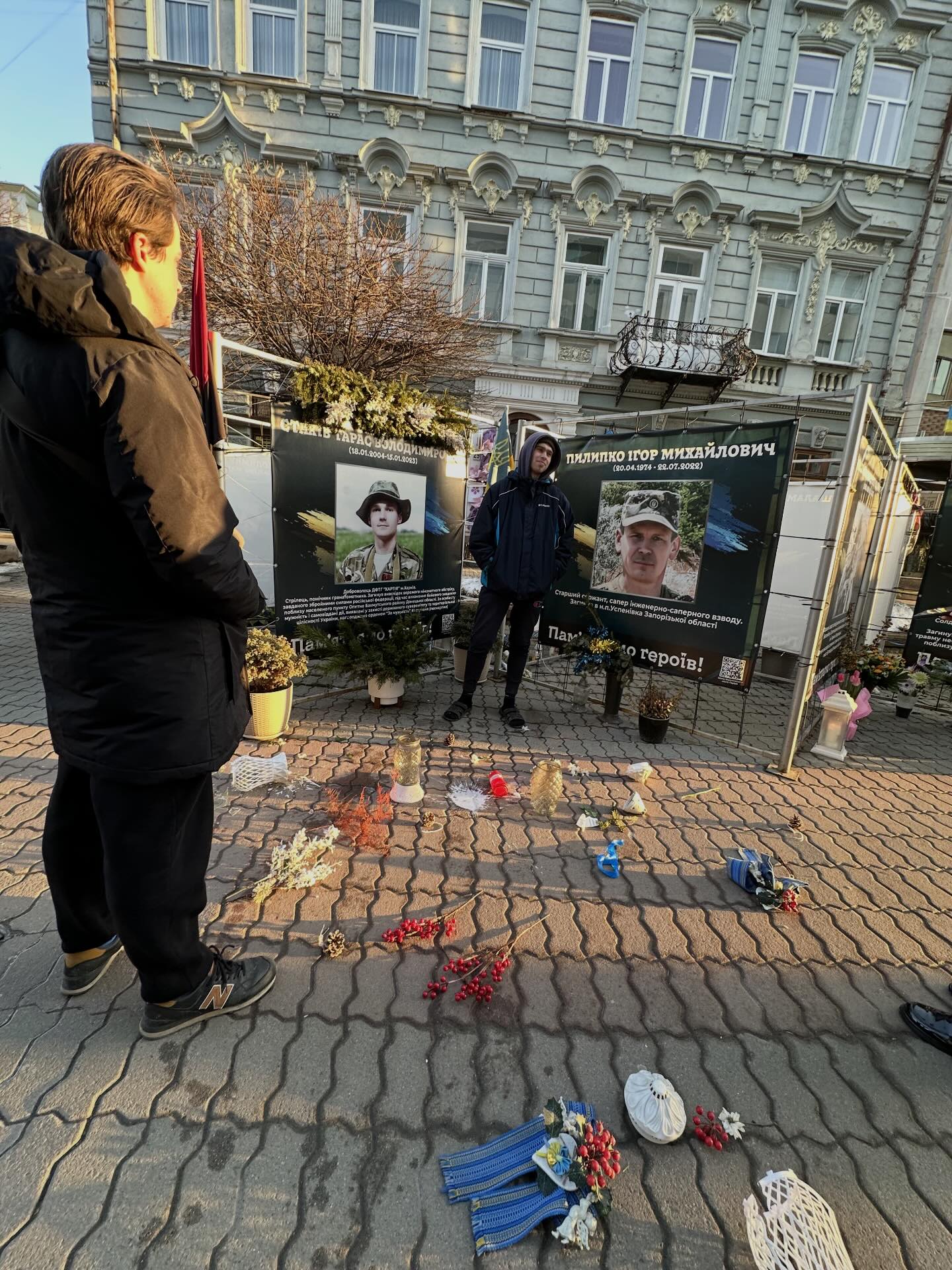 “Біля місця пам’яті нашого загиблого Героя один так званий “хлопець” влаштував справжній безлад. Він розгромив лампадки, зривав вінок і просто знущався з того, що для багатьох людей є святим — пам’яті про людину, яка віддала життя”