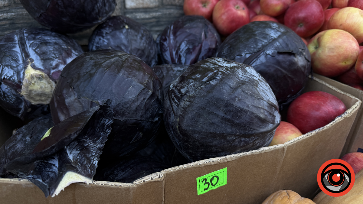 Ціни на капусту стартують від 120 гривень. Є і фіолетова капуста по 30 гривень.
