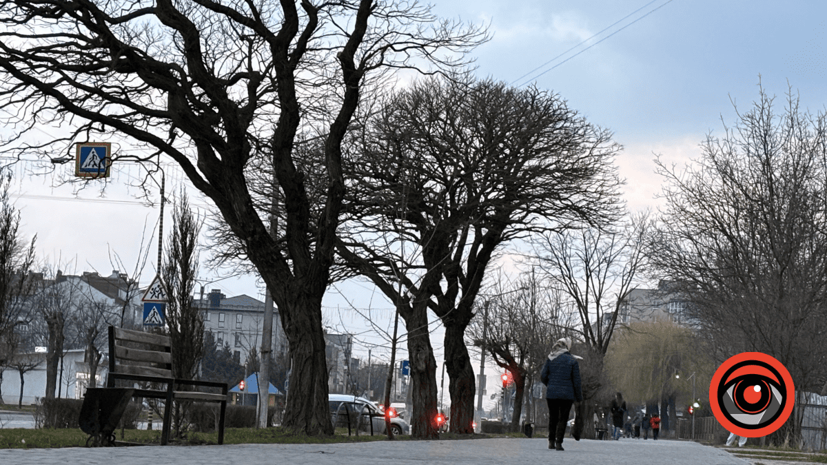 Світло ліхтарів перегукується з останніми відблисками сонця на верхівках дерев, і все разом виглядає як одна спокійна, трохи задумлива картина весни.