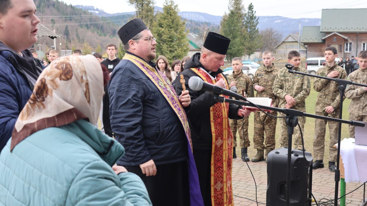 Чин освячення меморіальної дошки провели священники місцевих громад — отець Петро Іванів та отець Мирослав Чорний.