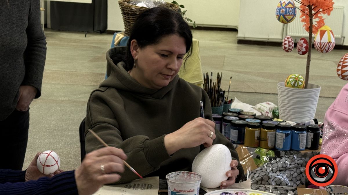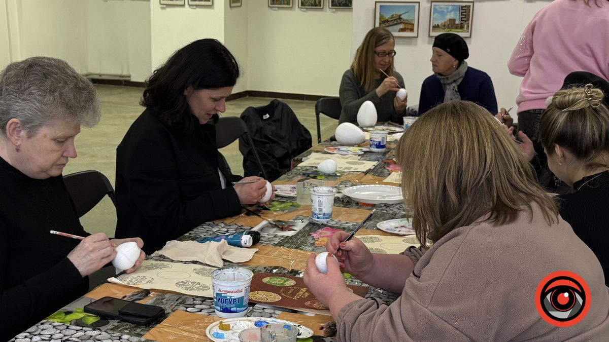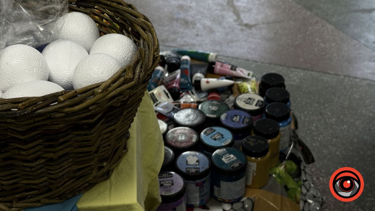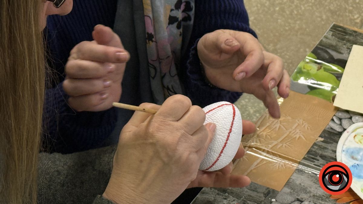 У Виставковій залі Калуша рідні військових власноруч розмальовували великодні яйця, створюючи писанки з українськими орнаментами та особистим символічним змістом.