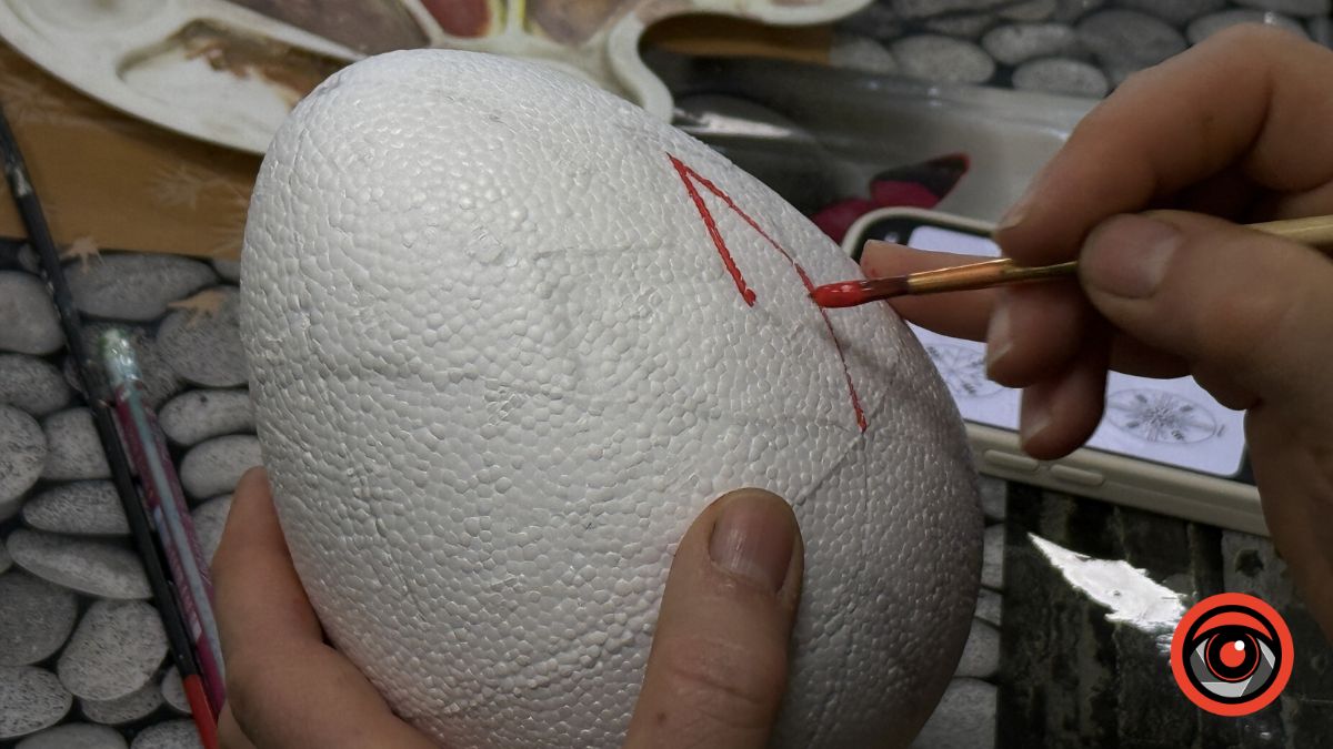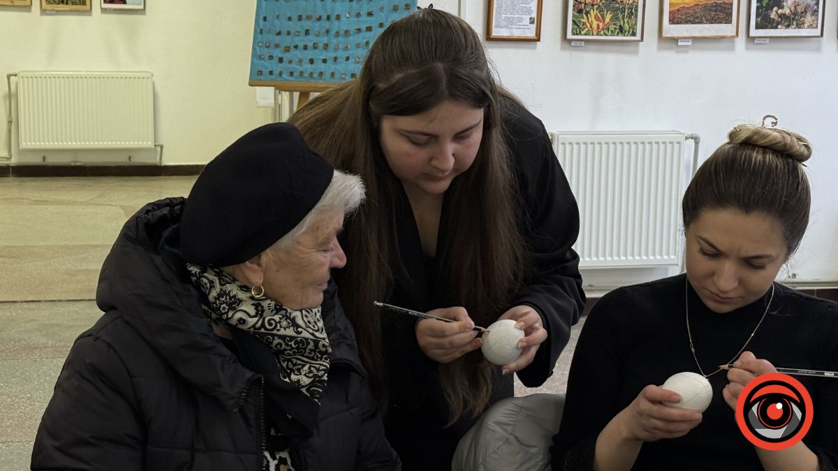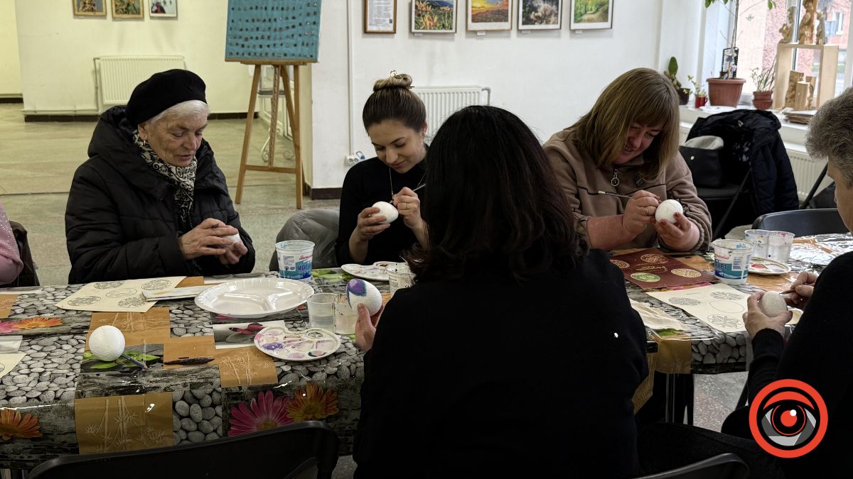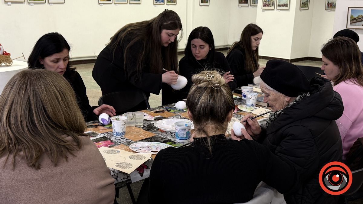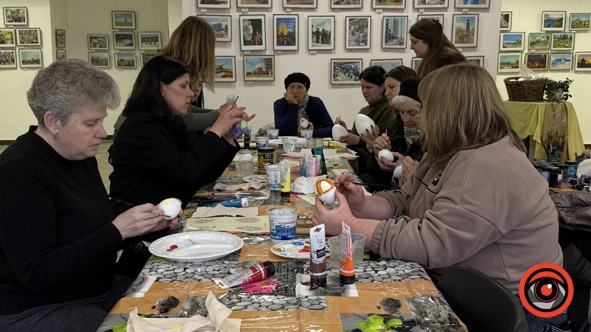 У Виставковій залі Калуша рідні військових власноруч розмальовували великодні яйця, створюючи писанки з українськими орнаментами та особистим символічним змістом.