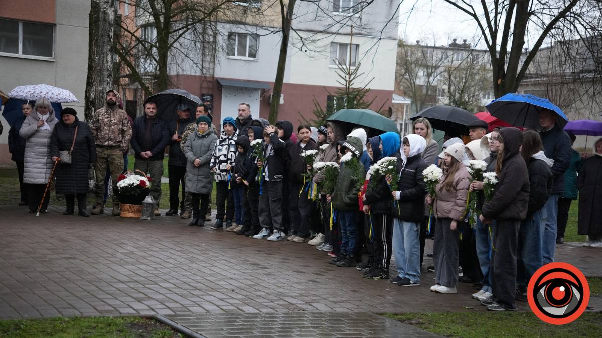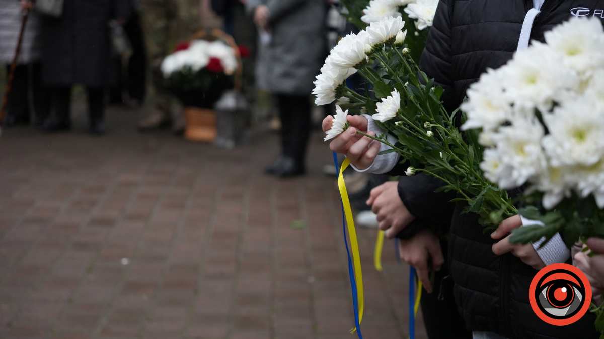Під час меморіального заходу у школярів на руках зав’язані символічні синьо-жовті стрічки, як символ держави, за яку загинув Ігор Бойчук і усі загиблі захисники.