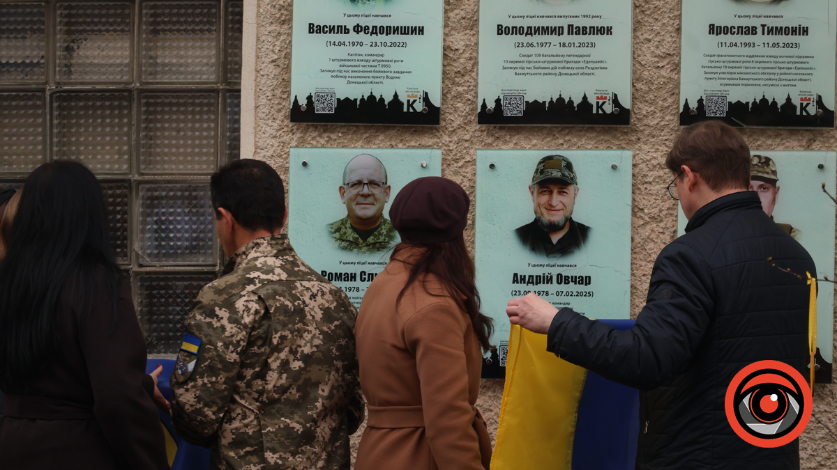 2 квітня на фасаді Калуського ліцею №3 відкрили та освятили меморіальні дошки Миколі Деркачу, Романові Слюзару та Андрію Овчару.